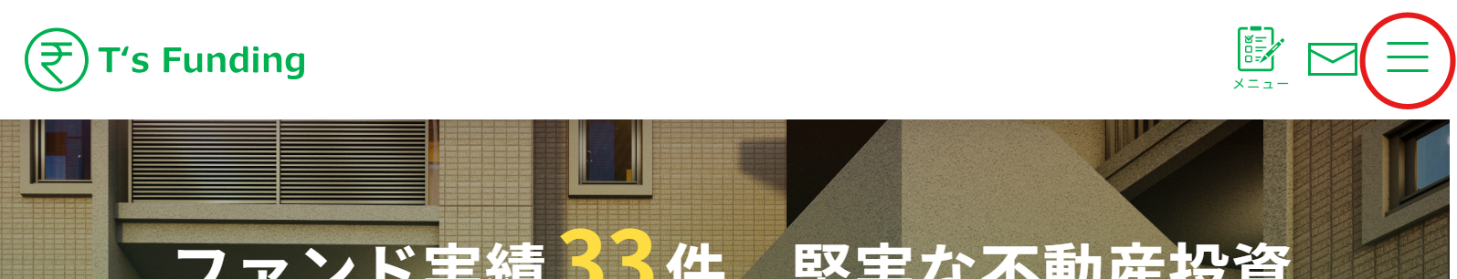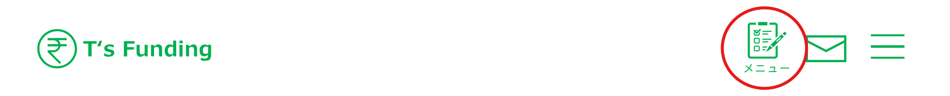 『T's Funding』にログイン後、右上の三本線からサイドメニューを開いてください。