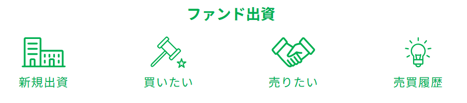 「買いたい」:他の投資家が売りに出している出資持分を買い取ることができます。