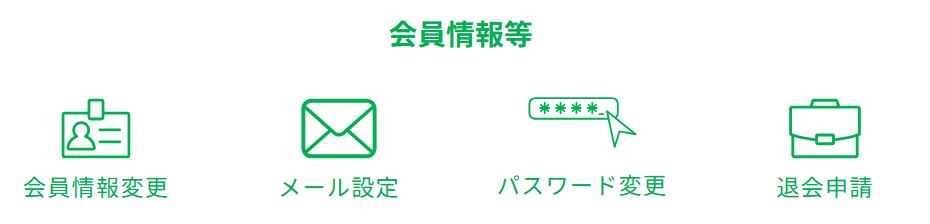 「退会申請」:退会の申請ができます。※退会後は各種書類のダウンロードはできませんのでご注意ください。