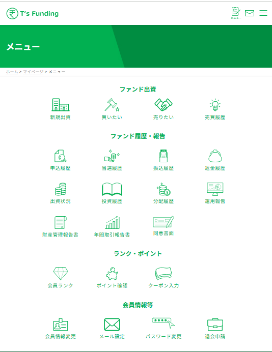 この度は『T's Funding』の会員様の投資体験を向上させるべく、T's Fundingのマイページについて解説させていただきます!